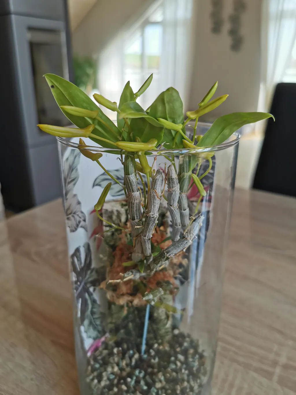 Petra Spangenberg Die Pflanze kam super verpackt und in einem hervorragenden Zustand an. Auch das Glas völlig unbeschädigt. Ich hab es als Geschenk gekauft. Die Orchideen-Liebhaberin war total begeistert.